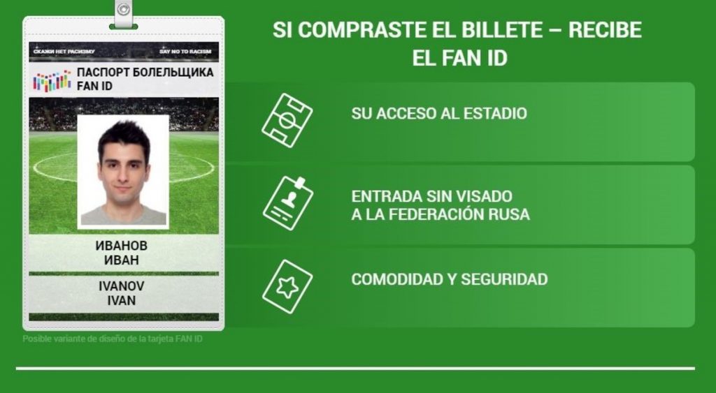 Por su parte, Rusia pensó en todos los asistentes a la copa mundial que esta ocasión auspiciarían. No se necesitarán pasaportes ni otros documentos para andar por el país, solo con una identificación de aficionado será suficiente, pues integra un chip que cuenta con todos los datos de la persona: Nombre, Edad, Nacionalidad y algunos otros datos básicos. Ademas será requerida para ingresar a los estadios, y todo esto será posible con solo escanear el chip de la Fan Card. Este mismo chip, está asociado con la tecnología de reconocimiento facial, que no sólo será desplegada dentro de los estadios, sino también en los sectores aledaños. “Durante el campeonato, la cámara podrá reconocer fácilmente a cualquier simpatizante que esté en una tribuna. Si alguien lanza una bengala o provoca una pelea, un policía sin problemas detectará la identidad de este fanático”, agregó Vasili Brovkó, presidente del directorio nacional de informatización.